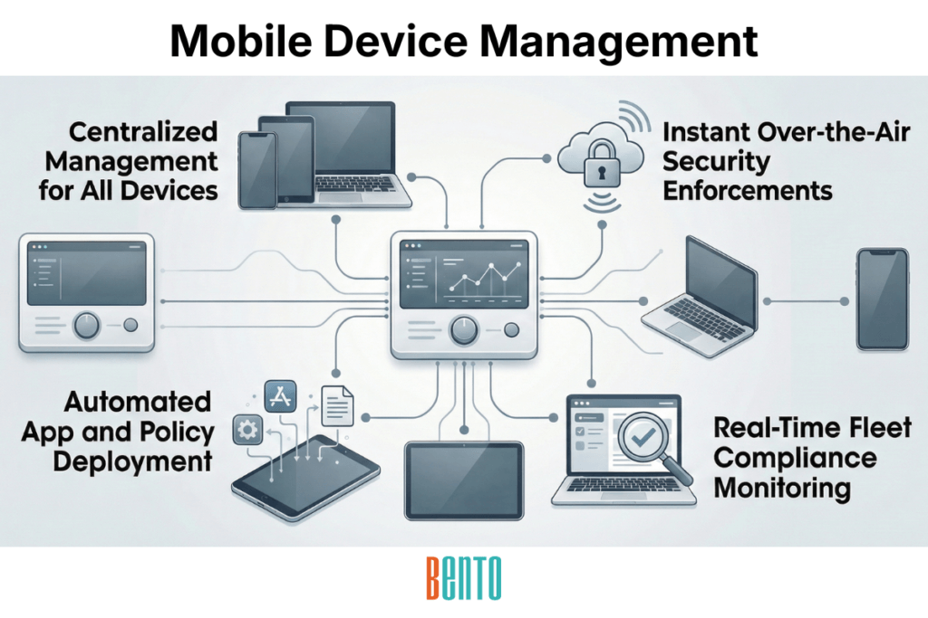 Solutions like Bento MDM extend mobile device management solutions further with cross-platform support (Android, iOS, Windows, macOS, Linux), flexible deployment (cloud, on-premise, SaaS), and pricing that starts at $1/device — making enterprise-grade MDM accessible to organizations of every size.